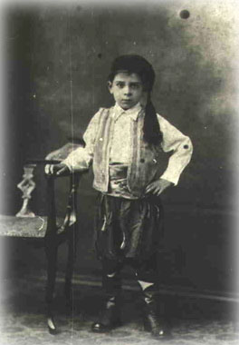 A second generation Castelorizian boy, 1927 dressed in a traditional dress by his mother. The photograph was sent to his grandparents in Castelorizo. The dual identity of second generation Castelorizian born in Australia is captured by this photograph.